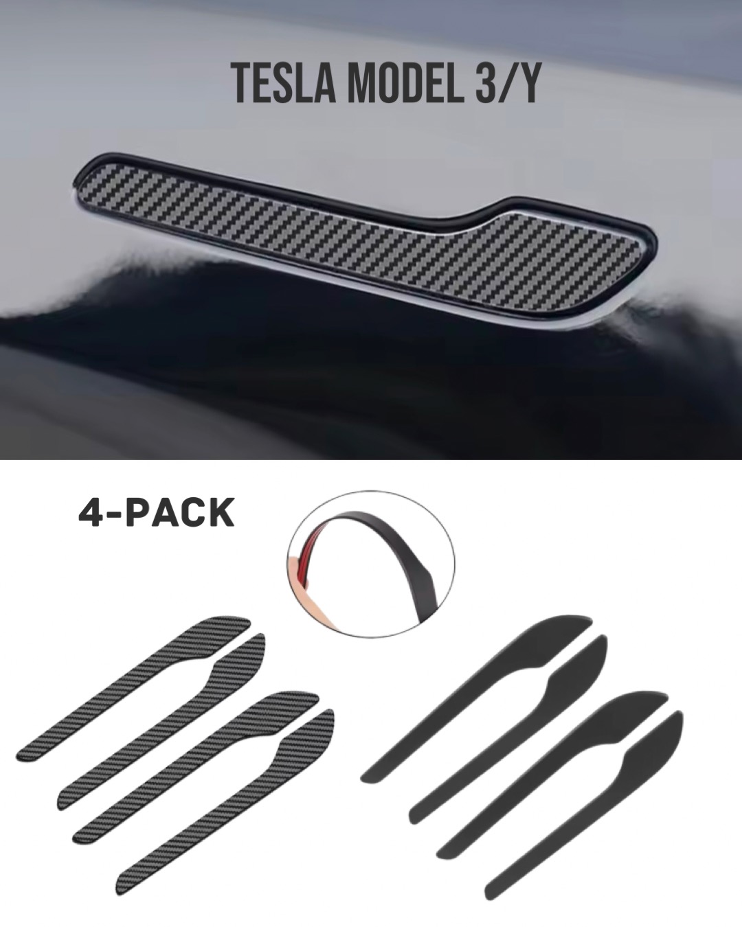 4-pack Tesla dörrhandtagsskydd till Model 3/Y – (Svart/Kolfiber)