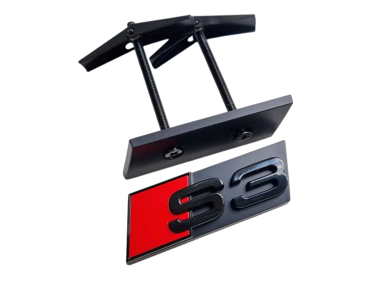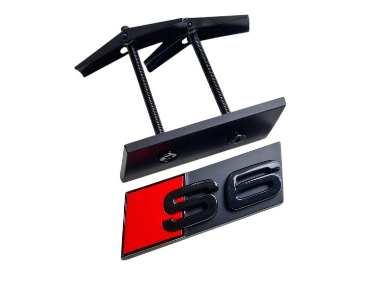 Svarta Audi S emblem till grillen med hållare, finns till flera modeller och passar i princip alla årsmodeller med utrymme för emblemet.