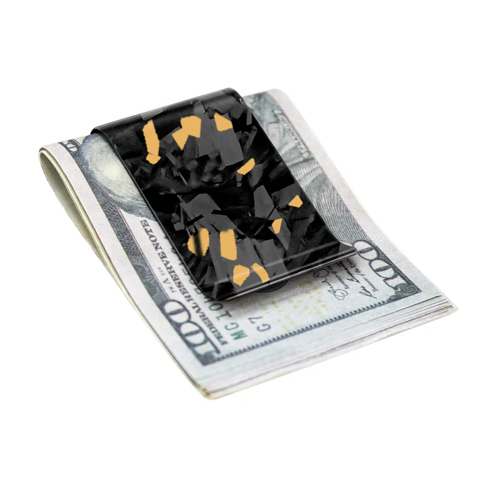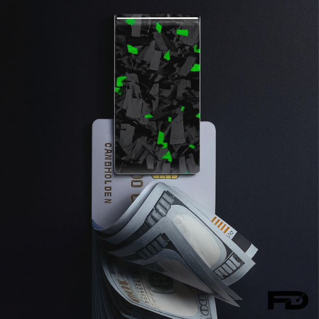 Det här är inte en vanlig pengaklämma. Det är The real deal – tillverkad i 100% äkta forged carbon fiber, likt de exklusiva materialen som används i sport- och superbilar. Infuserad med färgade aluminiumflingor som skimrar i ljuset, vilket gör varje exemplar helt unikt. Ingen klämma är den andra lik.