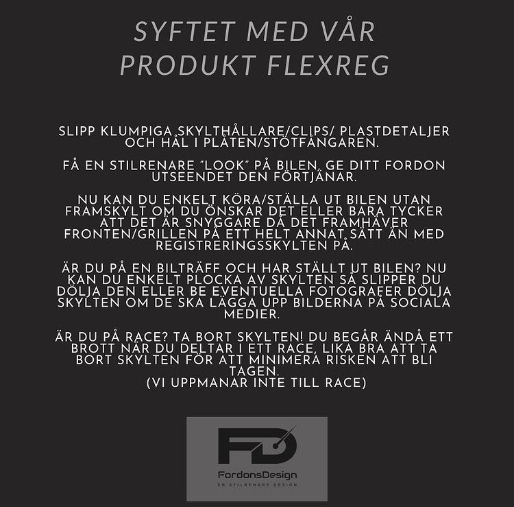 Jo, det är färdigskurna och storleks anpassade kardborreband med en självhäftande yta till alla fordon. FlexReg finns i två olika färger, vit & svart. Det är för att du ska kunna matcha ditt FlexReg med färgen på din bil så att det smälter in så gott det bara går. Tillexempel: Har du en vit/ljus bil så kan du välja det vita så att det knappt syns att du har något på. Har du en svart/mörk bil kan du istället välja det så att det smälter in och ser ut som att du inte har något alls.