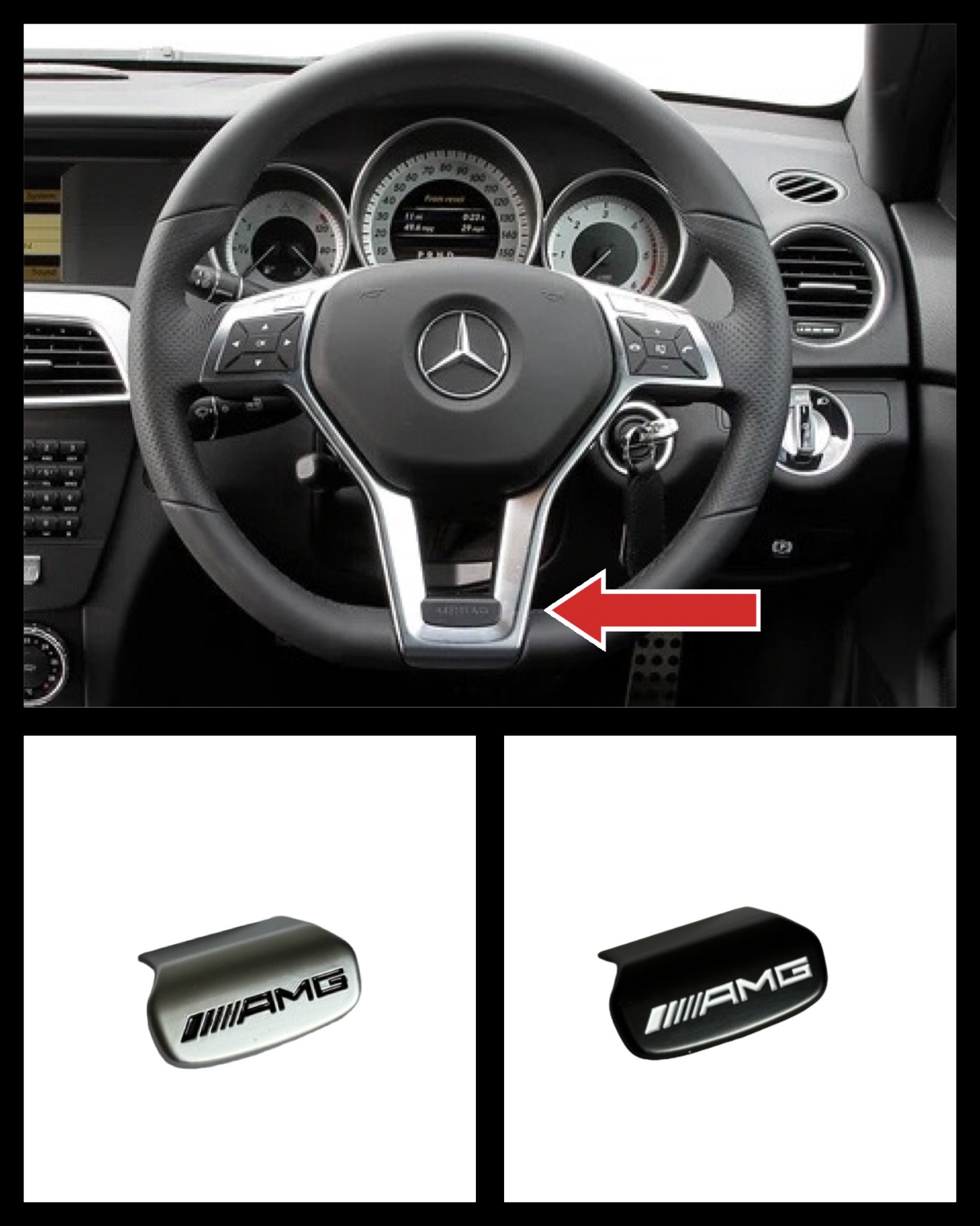 En AMG produkt till ratten som sätts ditt enkelt med dubbelhäftande tejp som medföljer baksidan av delen. Höjer rattens utseende. Till Mercedes.