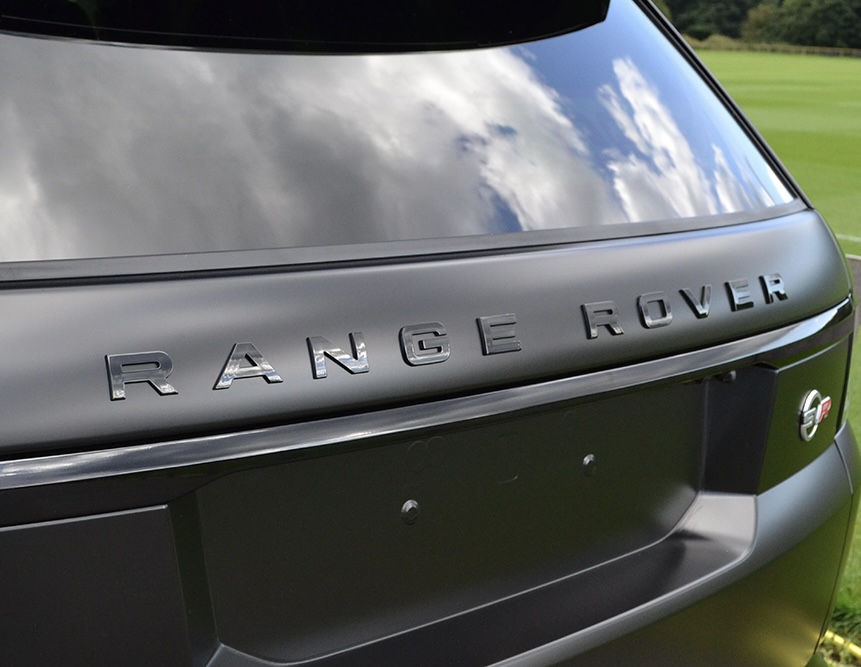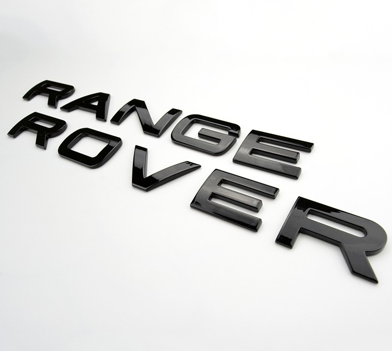 Range Rover emblem i blank svart som kan monteras på både framsidan och baksidan av bilen. Samma storlek som original. Kommer med dubbelhäftande tejp på baksidan av bokstäverna för en enkel montering.