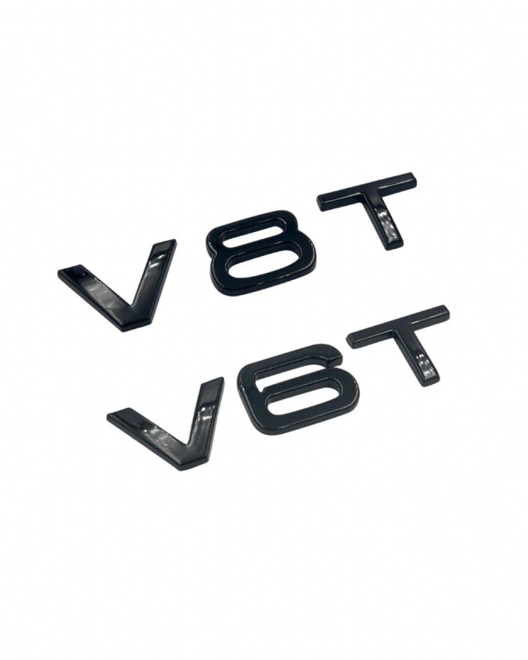 Svarta V6T och V8T emblem som kan placeras på bland annat skärmarna eller bakluckan. Super enkel montering med hjälp av den dubbelhäftande tejpen som finns på baksidan.