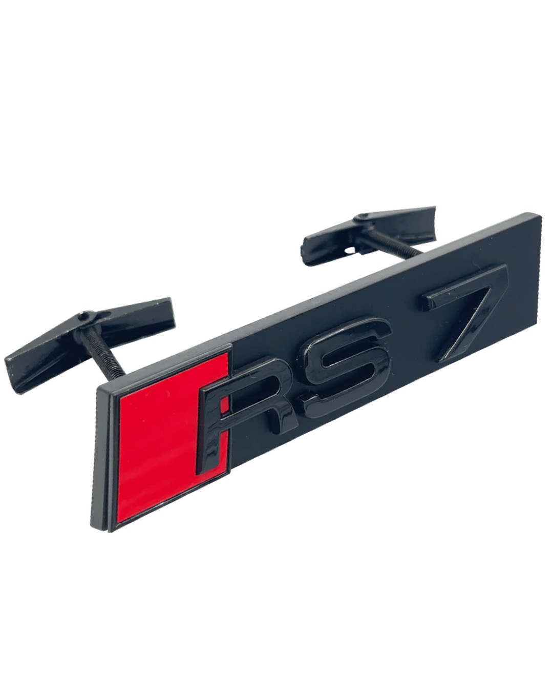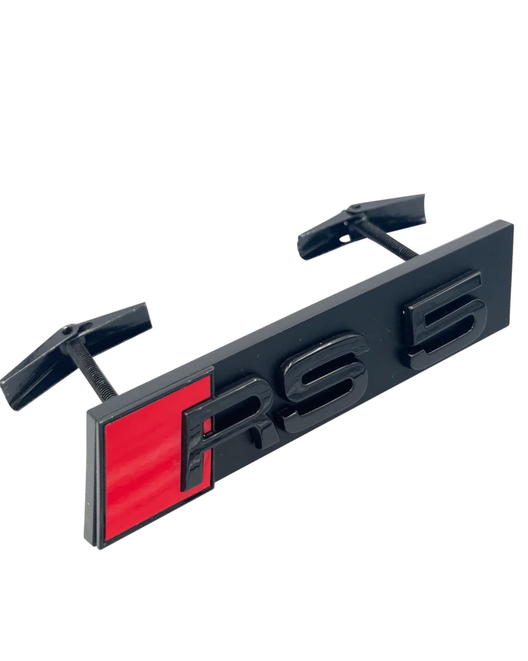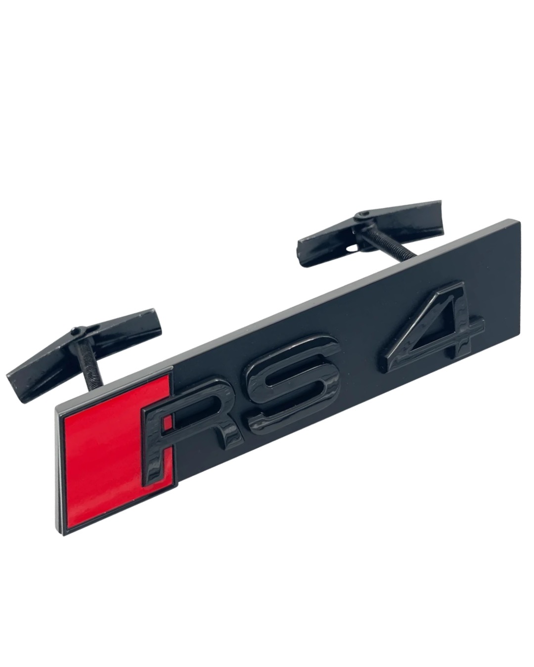 Svarta Audi RS emblem till grillen med hållare, finns till flera modeller och passar i princip alla årsmodeller med utrymme för emblemet.