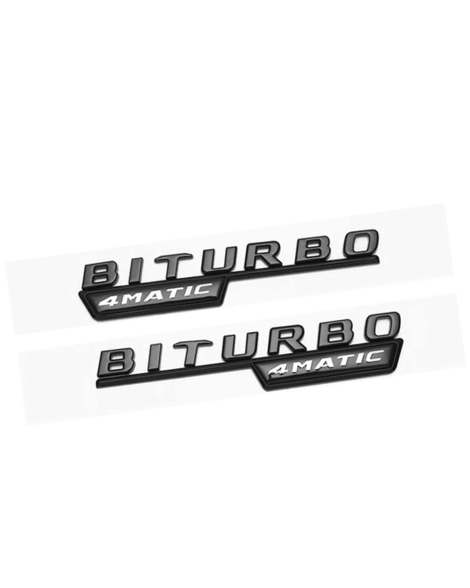 Svarta BITURBO 4Matic emblem till skärmarna, super enkel montering med hjälp av den dubbelhäftande tejpen som finns på baksidan. Välj bland antingen 1 eller 2-pack beroende på om de ska sättas på bägge skärmar.