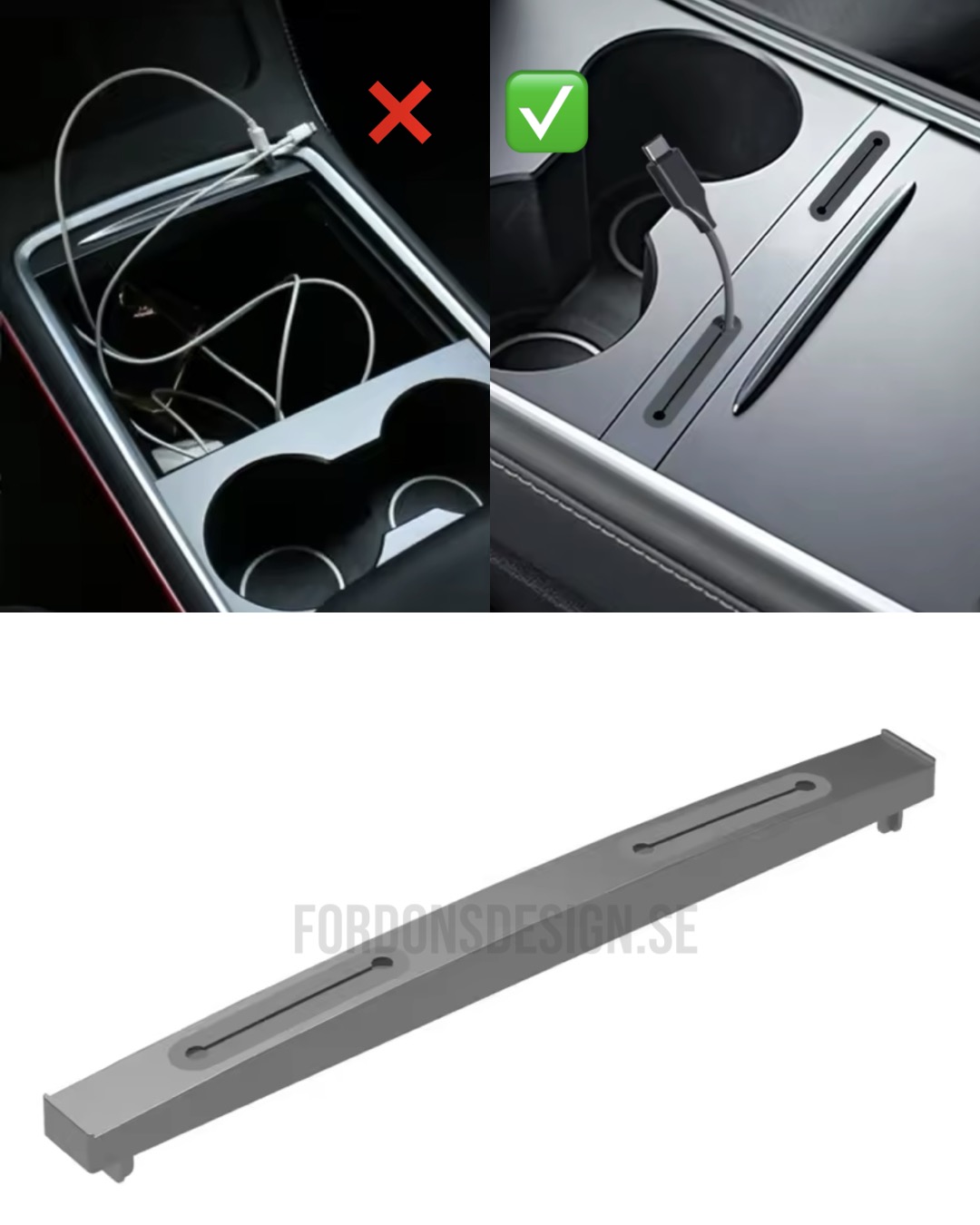Många Tesla-förare känner igen problemet med djupa fack, dåligt placerade uttag och kablar som lätt kläms. Med denna Tesla kabelgömma & USB-konsoluttag blir kabelhanteringen både snyggare och mer praktisk.