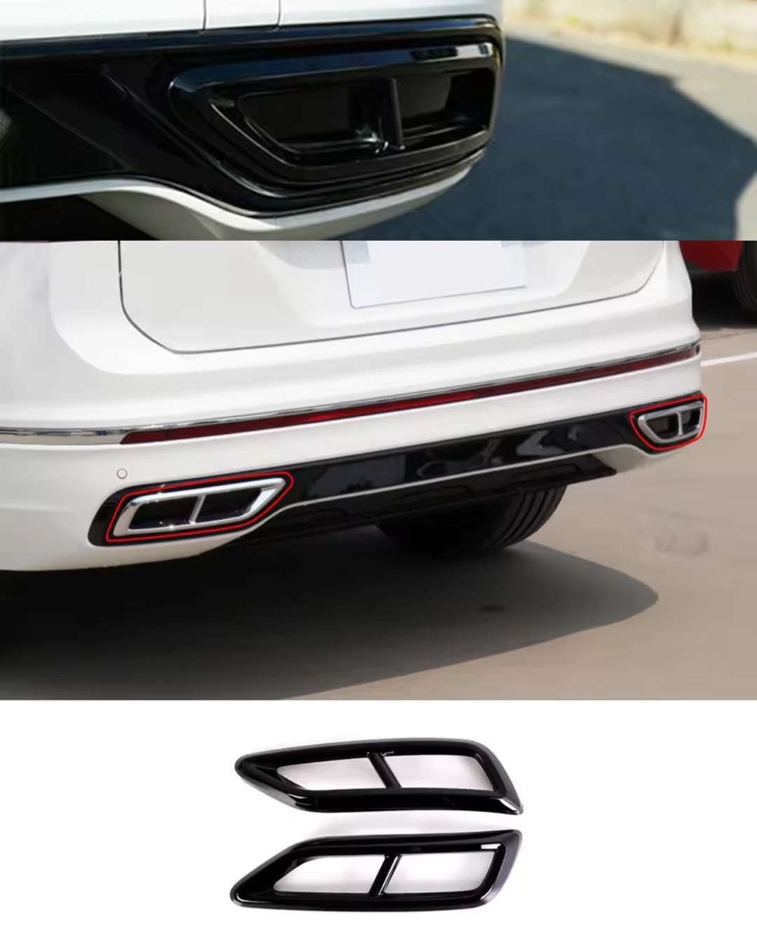 VW Tiguan ändrör/slutrör även kallade avgaskåpor med grym passform och som sätts dit super enkelt med hjälp av den dubbelhäftande tejpen som medföljer.